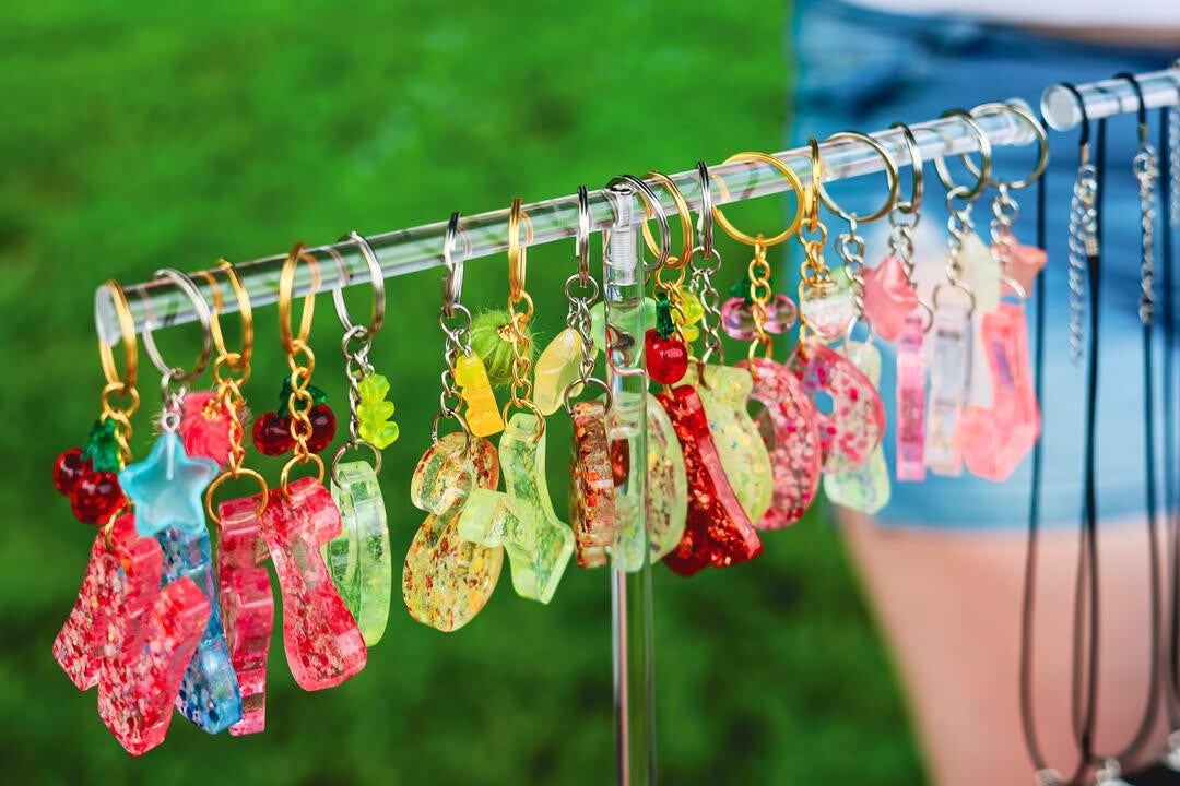 Epoxy resin, glass beads, clay beads, stone beads, acrylic beads, solar beads, canvas and cotton