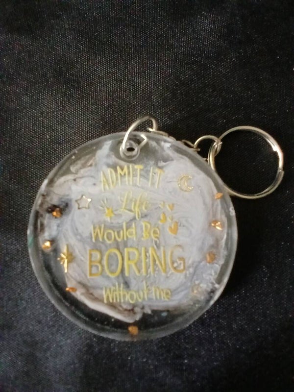 These keychains are made with epoxy resin and includes a funny/sassy quote