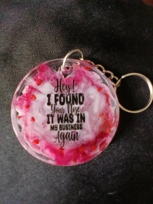 These keychains are made with epoxy resin and includes a funny/sassy quote