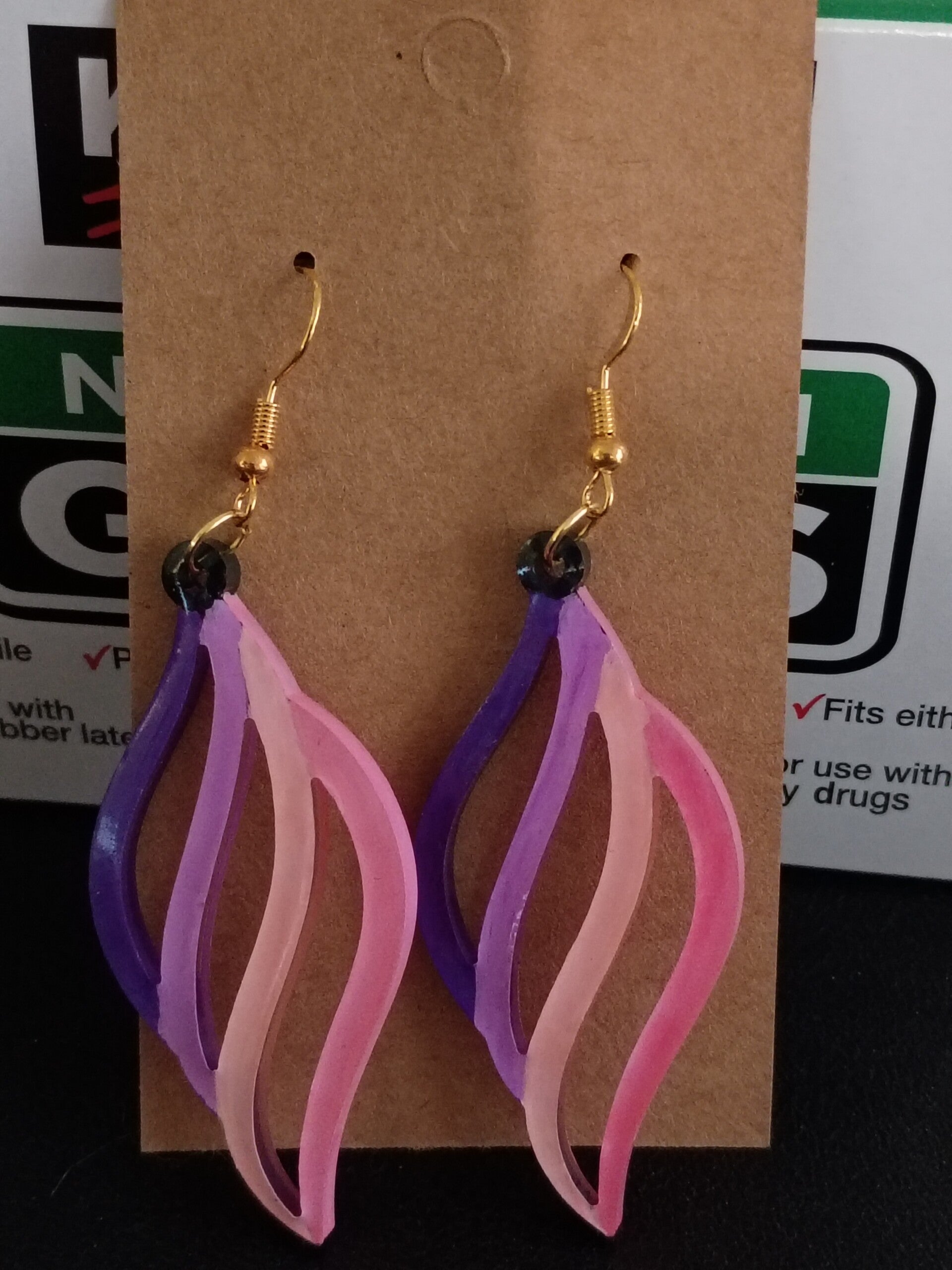 These pink and purple earrings are made with UV resin and painted with acrylic.